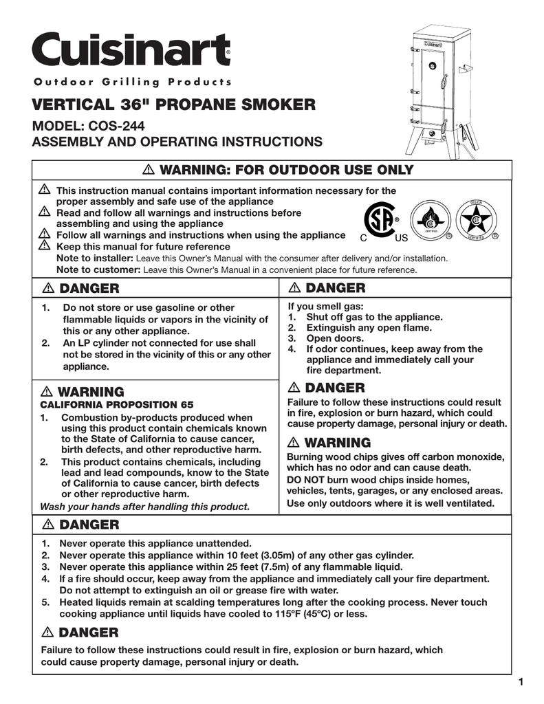 Cuisinart cos 244 vertical 36 propane smoker. Check spelling or type a new query. Maybe you would like to learn more about one of these? We did not find results for: